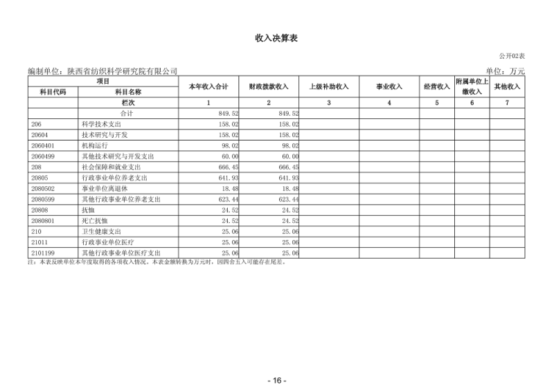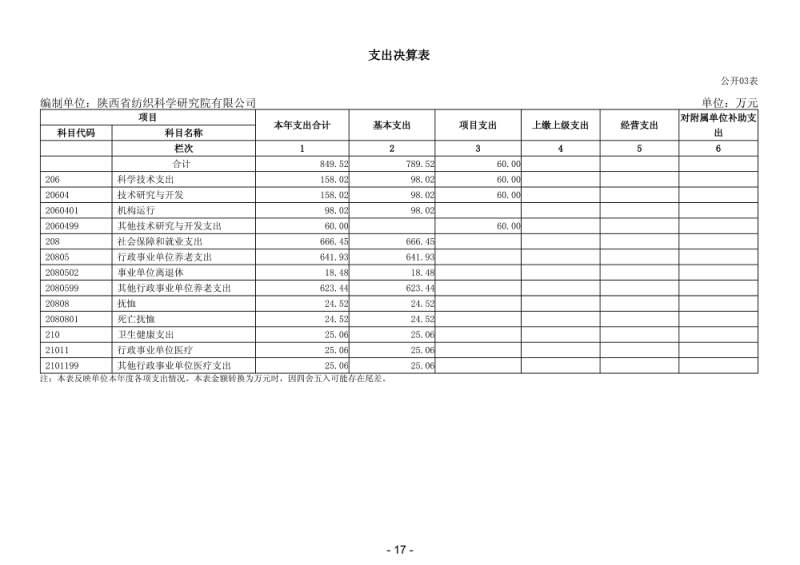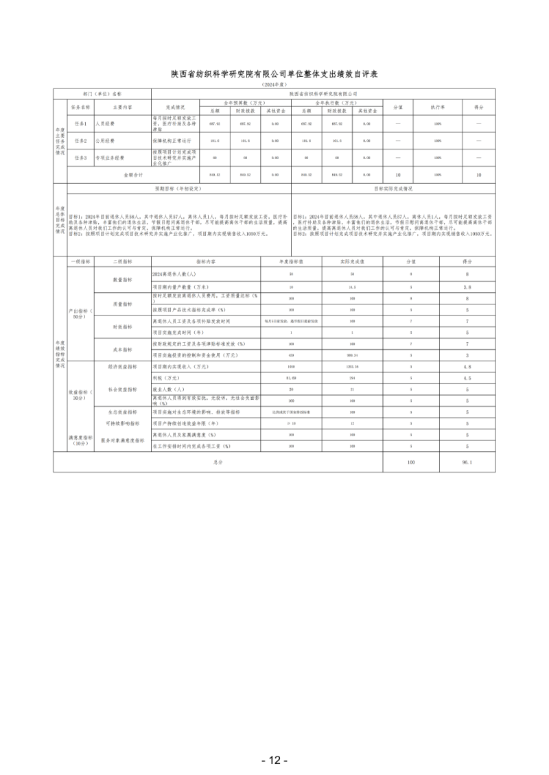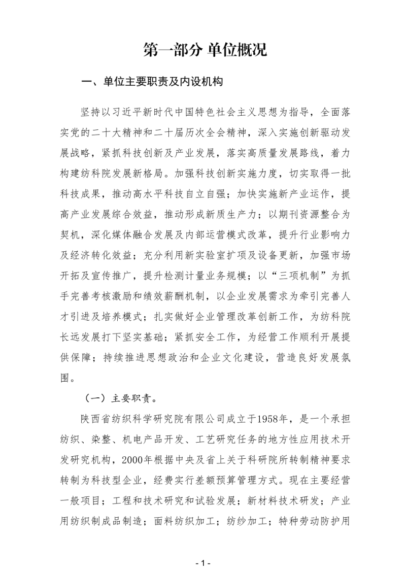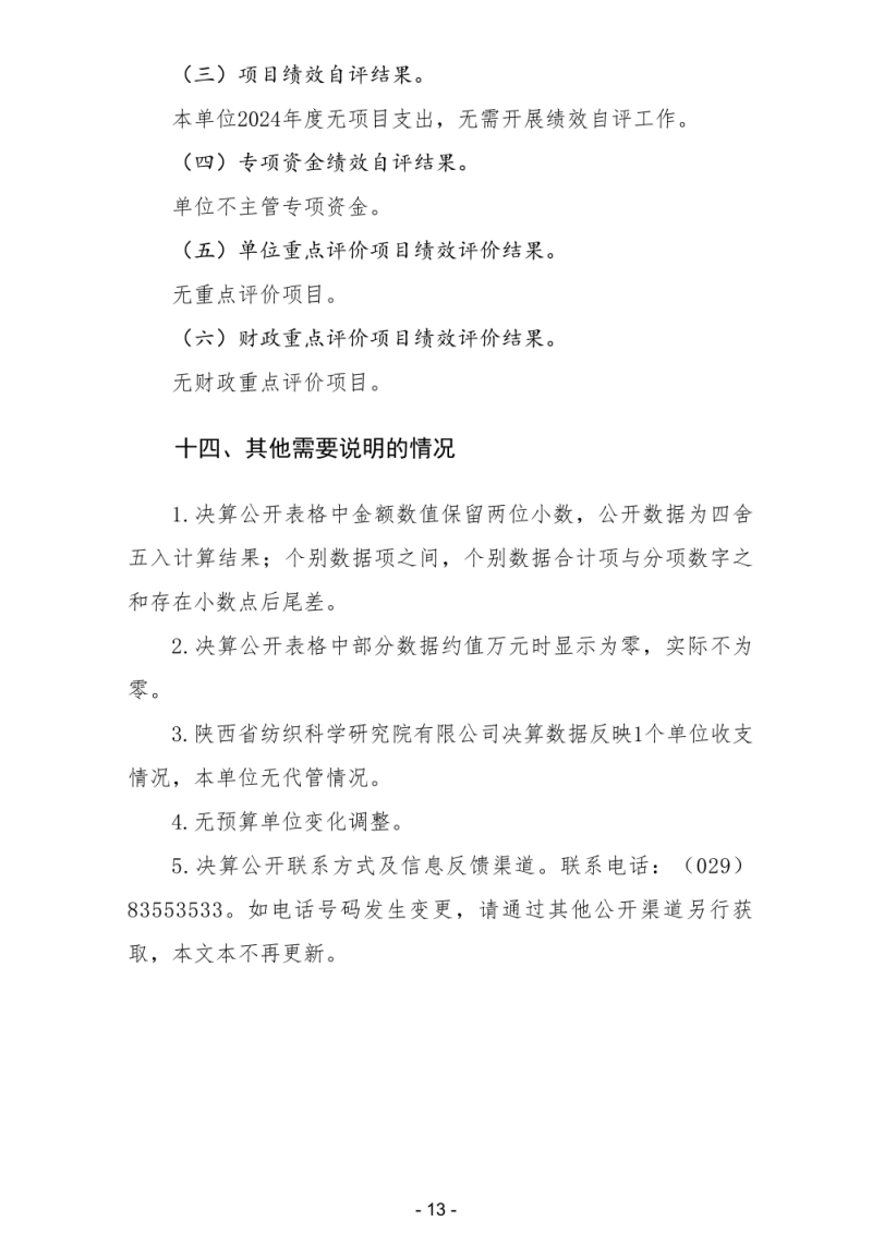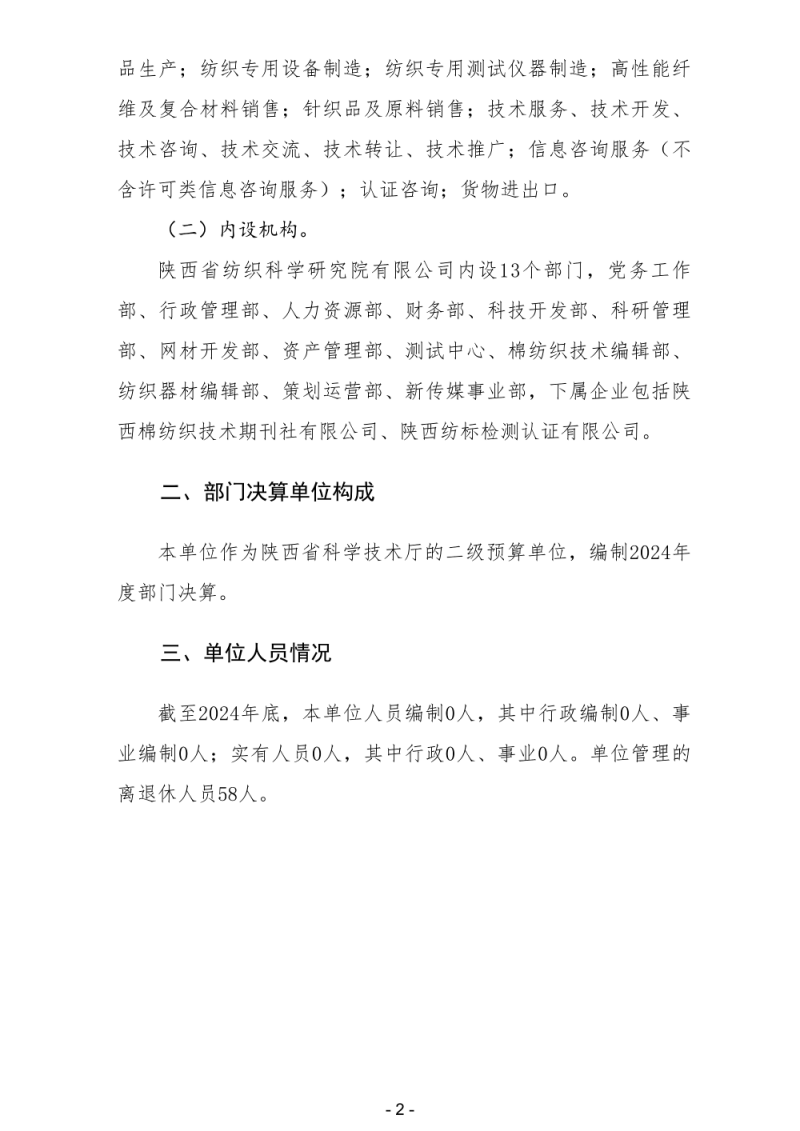 陕西省纺织科学研究院有限公司2024年度部门决算