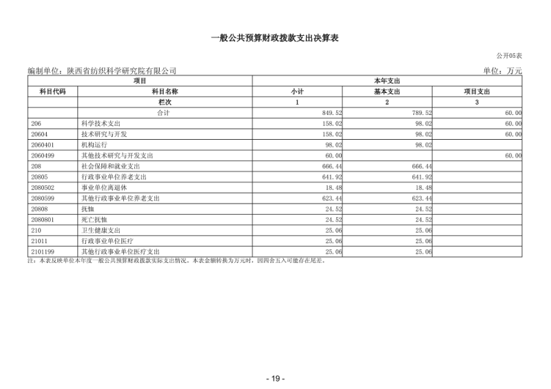 陕西省纺织科学研究院有限公司2025年单位预算公开