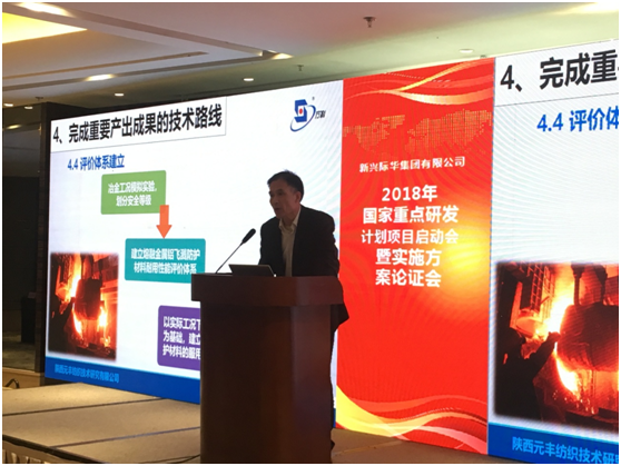 在项目咨询专家组组长、中国工程院院士、清华大学公共安全研究院院长范维澄主持的项目实施方案论证会上,元丰公司高级工程师张生辉作为 “熔融金属飞溅防护新材料的技术研究与开发” 课题项目负责人,汇报了课题实施总体方案,并和课题组其他人员一同与专家、领导现场进行技术交流、对接,听取专家组对课题技术路线及关键节点控制的指导意见和建议。