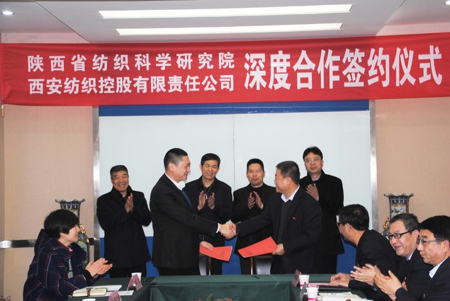 2018年12月29日下午,我院隆重举行与西安纺织控股有限责任公司深度合作签约仪式。西安市国资委党委书记、主任刘三民,西安市国资委监事会主席白相如,陕西科技控股集团有限责任公司党委书记、董事长、总经理范福会及副总经理莫会成、孙路等领导莅临会议。签约双方单位部分领导班子成员出席签约仪式。