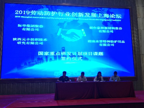 论坛上,元丰公司作为“熔融金属飞溅防护新材料的技术研究与开发”项目牵头承担单位,与际华集团及课题参与单位烟台泰和、湖南永霏等项目参与单位共同签署了合作协议。