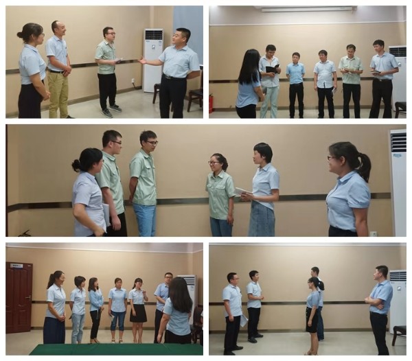 交流培训由进出口部业务骨干牟银铃主导。培训在欢快轻松的口语游戏中开始,牟老师首先用流利的英语详细讲述了我院的基本情况、组织结构、四大业务板块、六大系列产品、企业优势(研发团队、测试机构、供应链、国际认证、创新能力)、行业生产流程,并提示大家在接待客户过程中可能会遇到的各类问题。为保证大家都能理解,这次培训还特意安排进出口部胡亮亮现场翻译。口语练习环节,牟老师将参训人员随机分为5个小组,模拟客户来访和参观展位两大情景,各小组集思广益自由设计主题,分配角色,对话交流。在最后的模拟展示中,各组成员自信、大方,积极参与,赢得阵阵掌声。整场培训在轻松、热烈的氛围中圆满结束。
