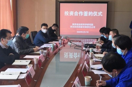 签约仪式上,纺科院院长刘强首先介绍了双方签订合作框架协议以来的工作进展,并明确了加快推进股权合作和研发基地建设急需解决的主要问题;接着,西安纺控总经理卢纪镐简要介绍了投资合作协议的具体内容。随后,刘院长和西安纺控总经理在参会领导见证下,代表双方在《投资合作协议书》上郑重签字。本次签约实施纺科院元丰公司增资扩股及研发基地建设,将实现双方优势资源整合,为科技插上资本和产业化的双翼,助力元丰公司释放科技创新和市场运营潜力,做强做大产业规模,倾力打造高性能纤维应用研发基地。