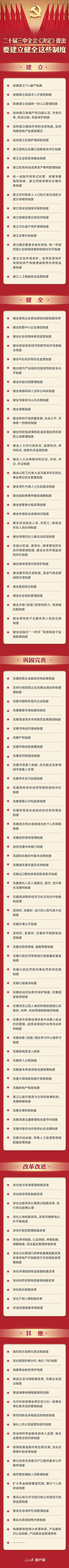 二十届三中全会《决定》提出要建立健全这些制度