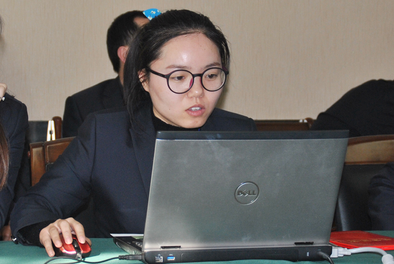 ▲图为安全防护用纺织品研发中心研发工程师刘琳作学术交流