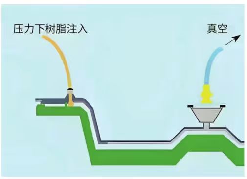 RTM(树脂传递模塑)成型工艺始于20世纪50年代,是在手糊工艺基础上发展而来的闭模成型技术,核心优势是能稳定生产双面光洁的高品质复合材料制品。国外类似工艺还包括树脂注射(Resin Injection)和压力注射(Pressure Injection)。其基本原理为:先将玻璃纤维增强材料精准铺设于闭合模腔,再通过压力将树脂胶液注入模腔,充分浸润纤维后经固化、脱模即可得到成品。