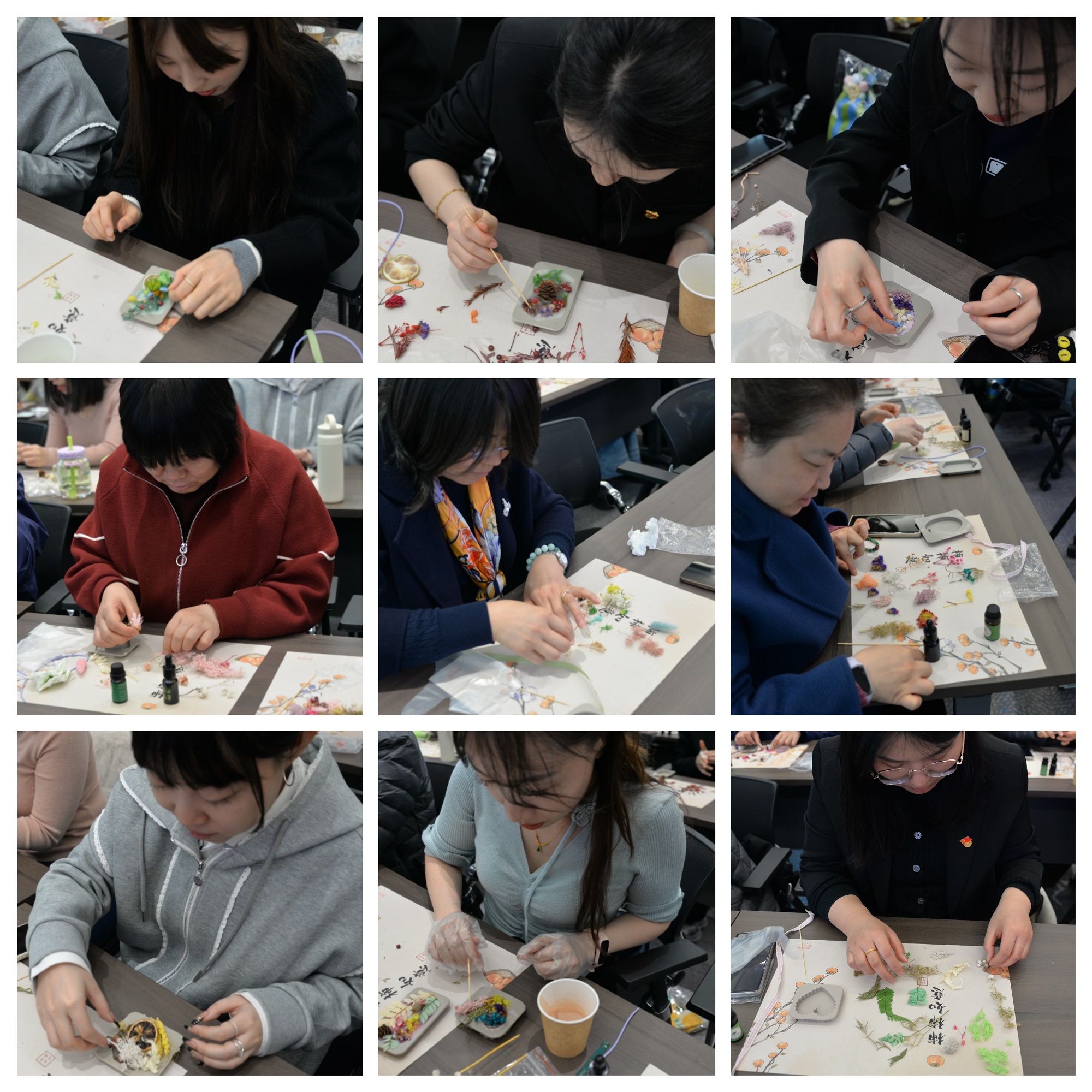 手工制作环节中,女职工们热情高涨、兴致盎然,在老师的细致讲解下,认真学习制作技巧,从材料搭配、造型设计到细节修饰,每一步都做得一丝不苟。大家相互交流创意、互帮互助,时而低头专注创作,时而轻声探讨方法,指尖翻飞间,原本普通的材料逐渐蜕变成一件件精致美观的手工作品。现场欢声笑语不断,大家在沉浸式的创作中,不仅体验到手工制作的乐趣,缓解了工作的疲惫,更增进了彼此间的情谊,充分展现了纺科院女职工心灵手巧、积极向上的精神风貌。